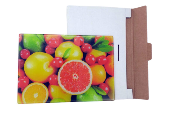 Our sublimation glass cutting and chopping boards are excellent quality toughened glass with a translucent sublimation coating applied to the back allowing for full colour print whilst still preventing light from passing fully through creating a fantastic effect. Supplied blank, unprinted ready to be personalised.
